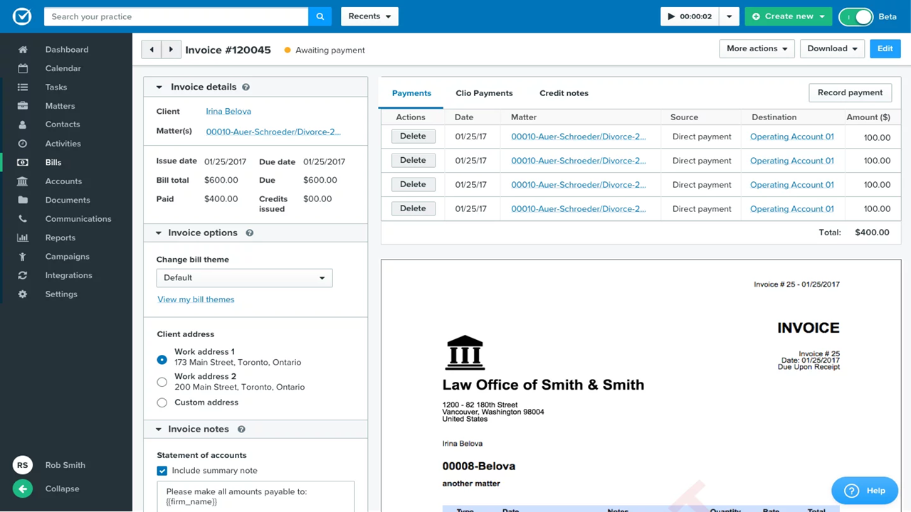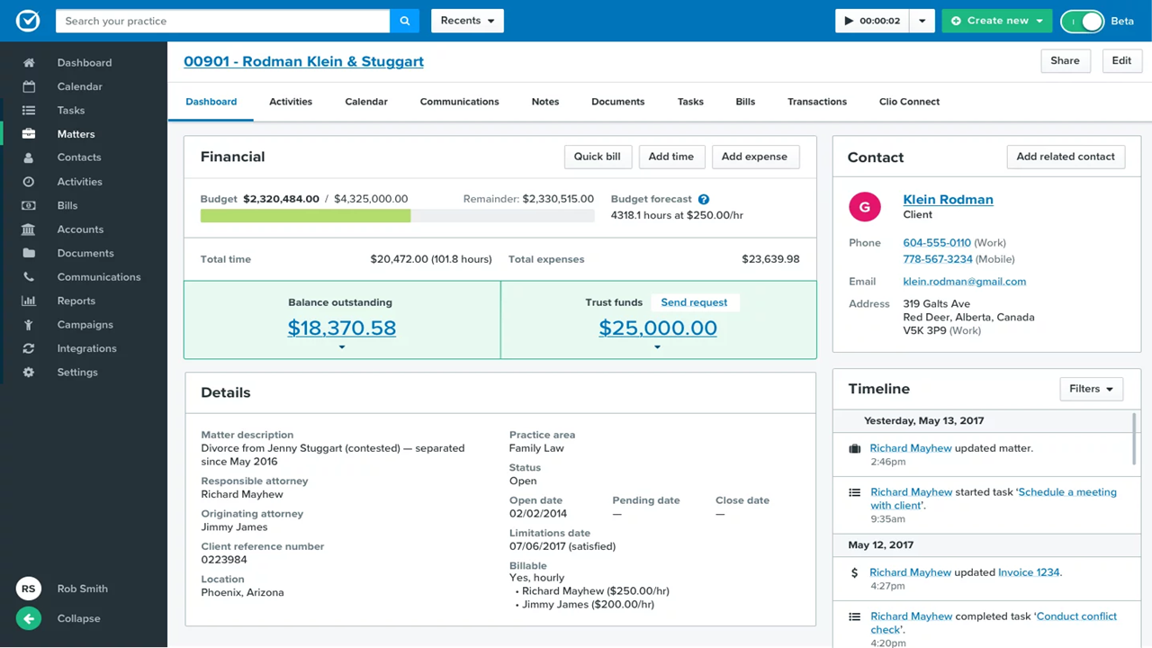 - You can manage cases and documents easily with Clio's intuitive interface.